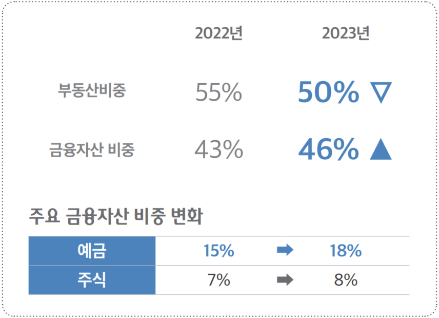 · 부자의 총자산은 지난 조사에 이어 감소세, 부동산 비중이 축소된 영향