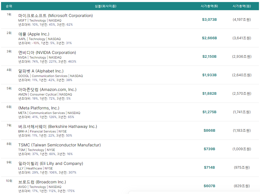 엔비디아(NVDA) 시가 총액 미국 주식 나스닥 몇위