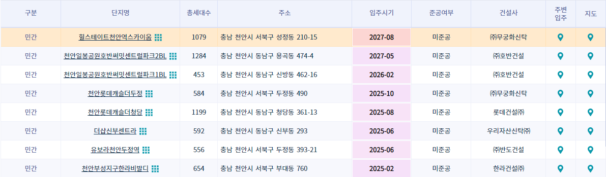 천안시 미분양 아파트의 감소가 나타나고 있습니다. 3~4월까지 꾸준히 감소되고 있던 미분양이 5월에 들어서면서 모델하우스 이곳 저곳의 관계자들과 통화를 해보니 이번달은 큰 소진이 이루어지지 않다는 것이 공통적인 상황이었습니다. 준공후 미분양을 악성 미분양이라고 하는데 백석센트레빌과 부성역 우남퍼스트빌은 일부 세대만 남아있는 것으로 확인했습니다. 현재 준공전 미분양 중에서는 저렴한 분양가를 토대로 막바지 분양에 진행하고 있는 두정역 반도유보라가 가장 큰 감소가 되고 있는 것 같습니다.