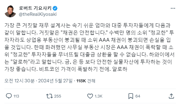 로버트 기요사키 트위터 5.27, 00:30