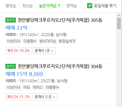 불당동 1위 불당지웰더샵, 2위 불당호반써밋플레이지(불당호반2차)는 변동이 없습니다. 불당 우미린스트라우스 1단지와 2단지는 7억원대로 거래가 되었으니 공원조망을 바라보는 동이라는 결론이 나옵니다. 1단지와 2단지의 순위는 서로 서로 변동이 있어 보입니다.