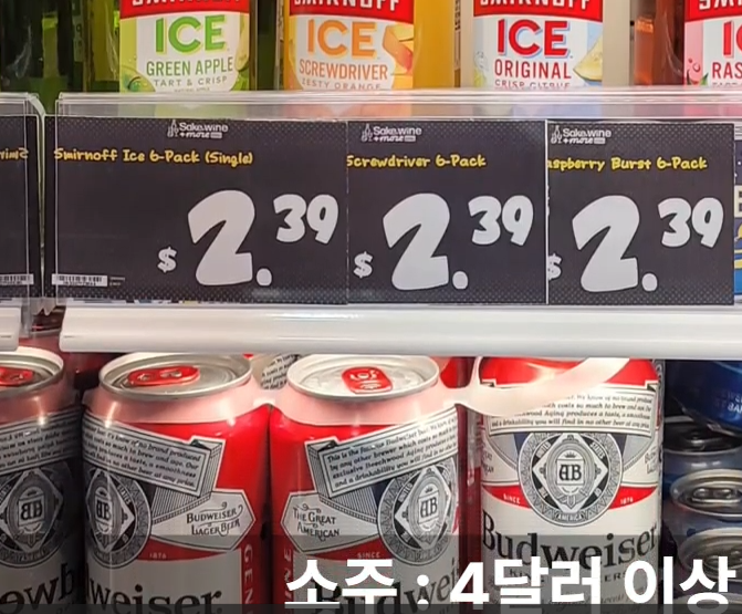 우리나라에서 소주는 서민 술이지만 해외나가면 어디든 비싸요.. 괌 역시 비쌉니다. 괌 식당에서 먹는 것보다 3배 이상 싸다는 느낌입니다. 소주가격은 4달러가 넘으니 한국돈으로 5~6천원 정도 하는거죠. 편의점은 2배 넘게 비쌉니다. 맥주를 보면 싼 맥주가 코로나 맥주나 버드와이저와 같은 병 맥주는 약 2달러 아래에서 살 수가 있어요