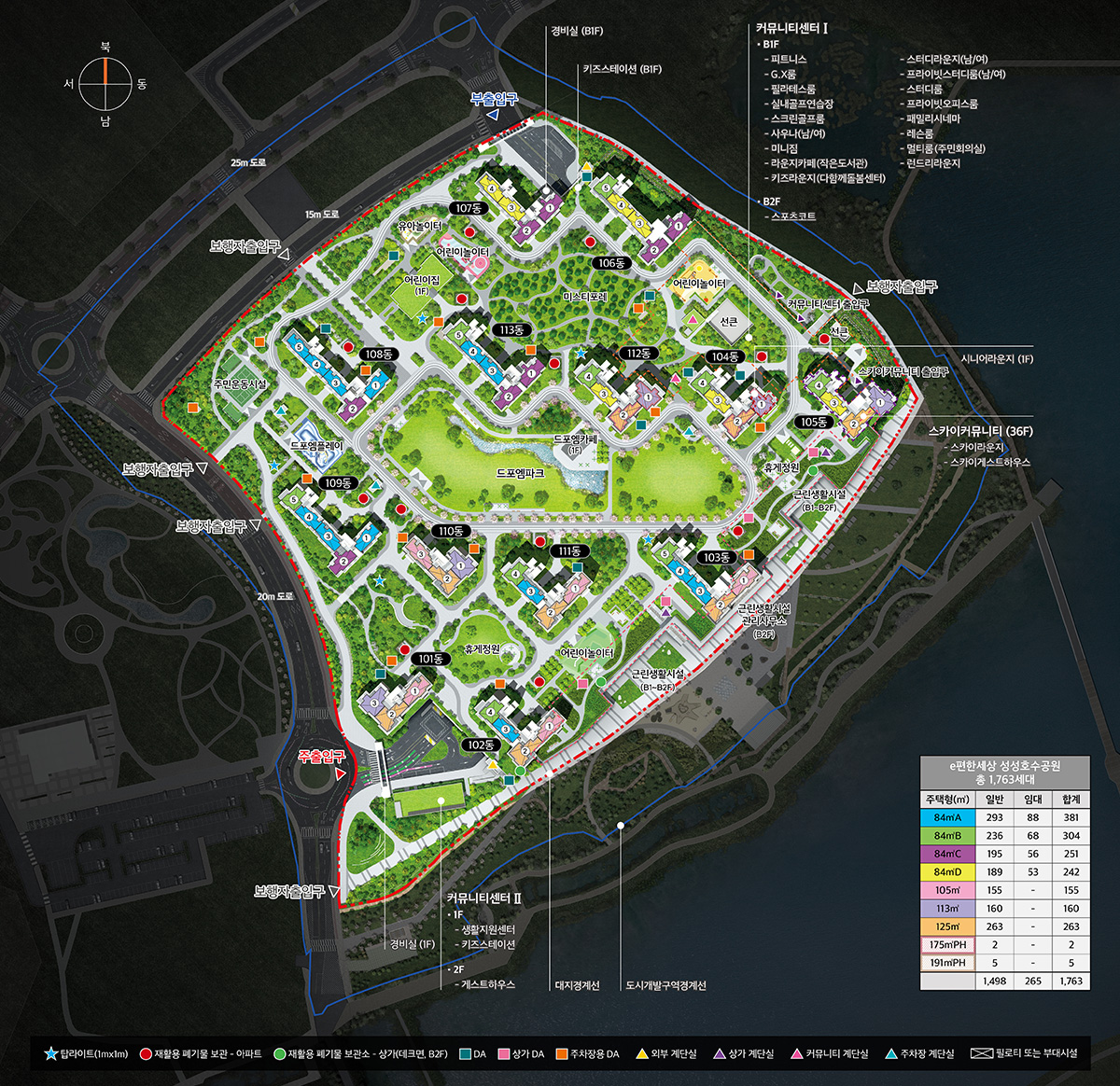 ‘이편한세상 성성호수공원’은 지하 3층, 지상 최고 39층, 13개 동, 총 1,763가구 규모의 대단지로, 그 중 1,498가구는 일반분양 물량입니다. 이 단지는 성성호수공원 바로 앞에 위치한 ‘레이크 프론트’ 단지로, 수변 주변 가구에서는 호수공원을 직접 조망할 수 있어 탁월한 자연경관을 자랑합니다.