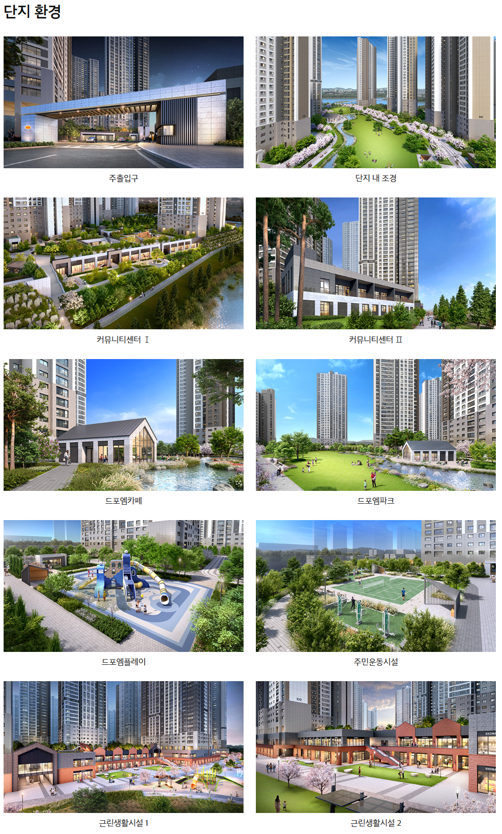 또한, e편한세상 성성호수공원은 ‘드포엠’이라는 특화 조경브랜드를 적용하여 공원형 아파트로 조성됩니다. 드포엠파크, 휴게정원, 미스티포레, 어린이놀이터 등 다양한 조경시설들이 단지 곳곳에 배치되어 있어 자연과 함께하는 쾌적한 환경을 제공합니다.