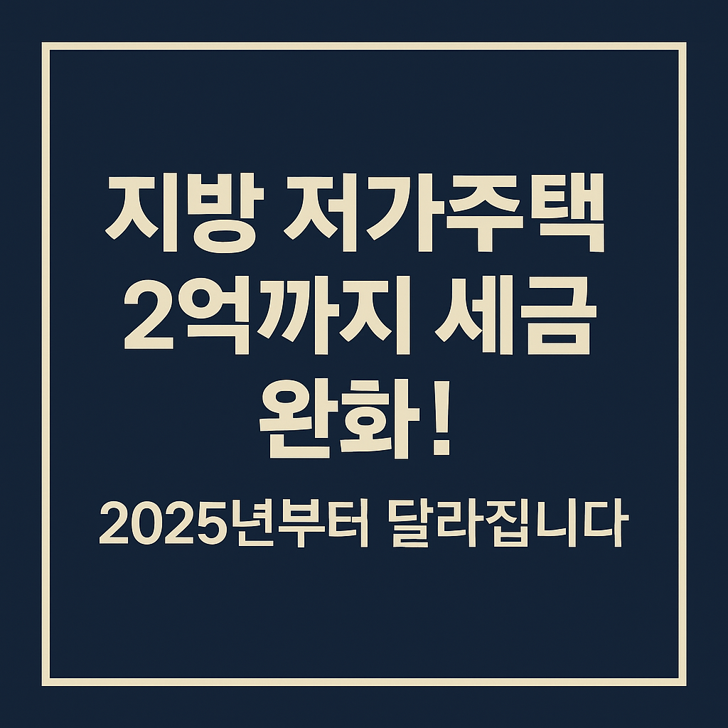 📌 지방 저가주택 기준 상향: 공시가격 1억 원 → 2억 원