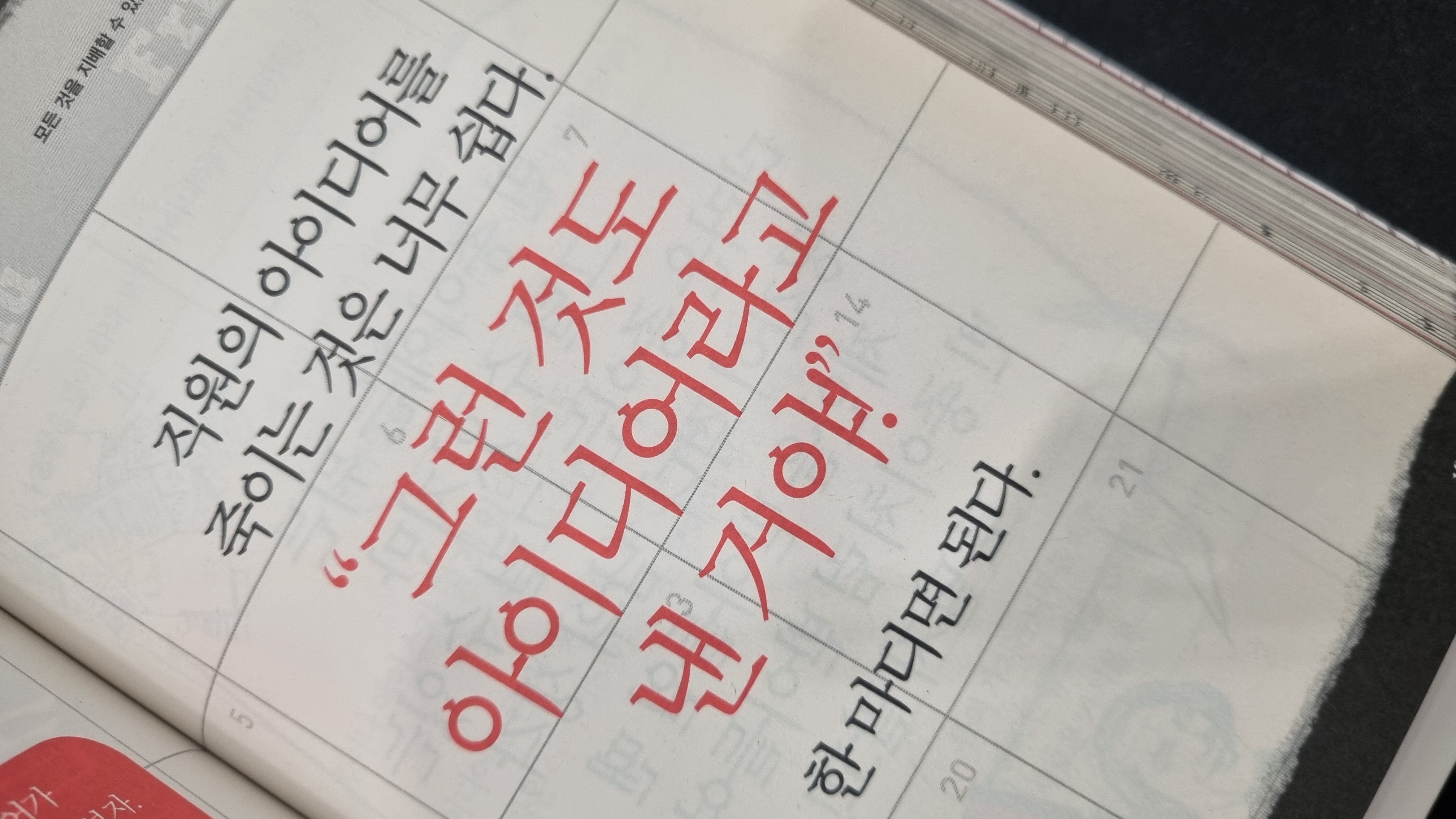 대부분 한 줄짜리 명언으로 구성되어 있어 지하철에서 몇 장만 넘겨도 하루치 자극을 받는다.