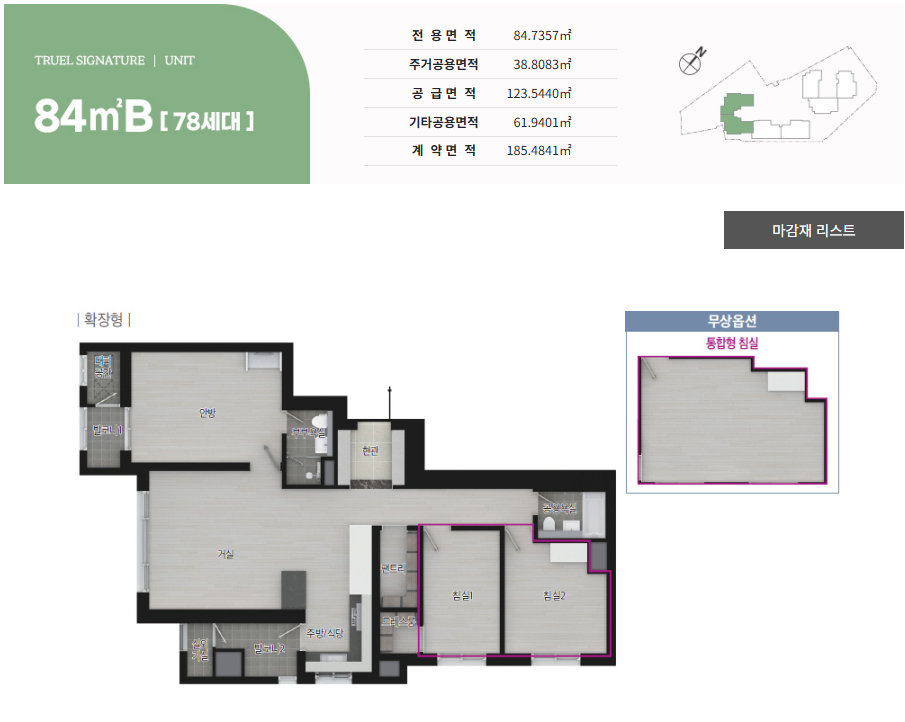 단지 자체도 43층 높이의 초고층 설계로 천안 도심 스카이라인을 새롭게 그립니다. 전용 78㎡·84㎡ 중심의 실속형 평면과 146㎡·152㎡ 펜트하우스까지, 실거주와 프리미엄 수요를 동시에 만족시키는 구조입니다. 전 세대 남향 위주 배치, 4BAY 판상형 구조, 와이드 거실과 알파룸 제공 등 최신 주거 트렌드가 모두 반영됐습니다.