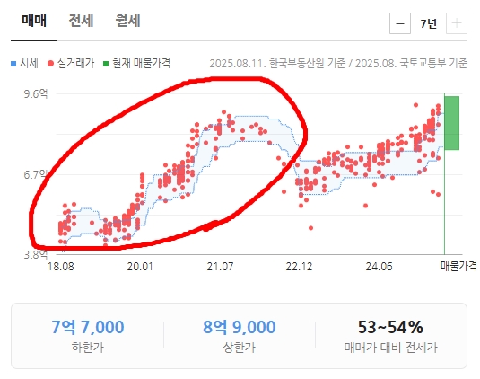 제 경험상, 이런 교통 호재가 현실화되면 분양가는 가파르게 상승합니다. 솔직히 말씀드리면, GTX-C가 완공된 후에는 지금 이 가격으로 천안역 트루엘 시그니처를 분양받는 건 불가능 할 가능성이 큽니다. 수도권 노선중 가장 황금노선으로 불리우는 신분당선이 대표적입니다. 당시 신분당선이 들어서던 수지구청역 착공 - 공사중 - 준공직전 - 준공후 이런 형태로 가격대가 팍팍 상승하는 추세를 봐왔습니다. 신분당선 연장에 따라 단지와 500m 이내 아파트의 경우 초역세권이라는 이유로 바로 옆 아파트와도 2억, 3억씩 차이가 나기도 합니다. 아래는 그 사진을 입증하는 매매가 그래프입니다.