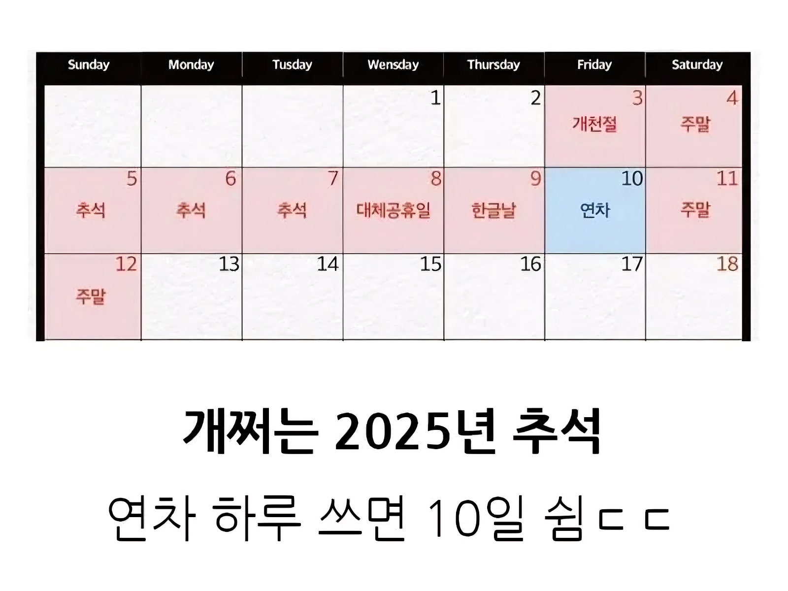 10월 10일 임시공휴일 없어도 괜찮아! 연차로 해결