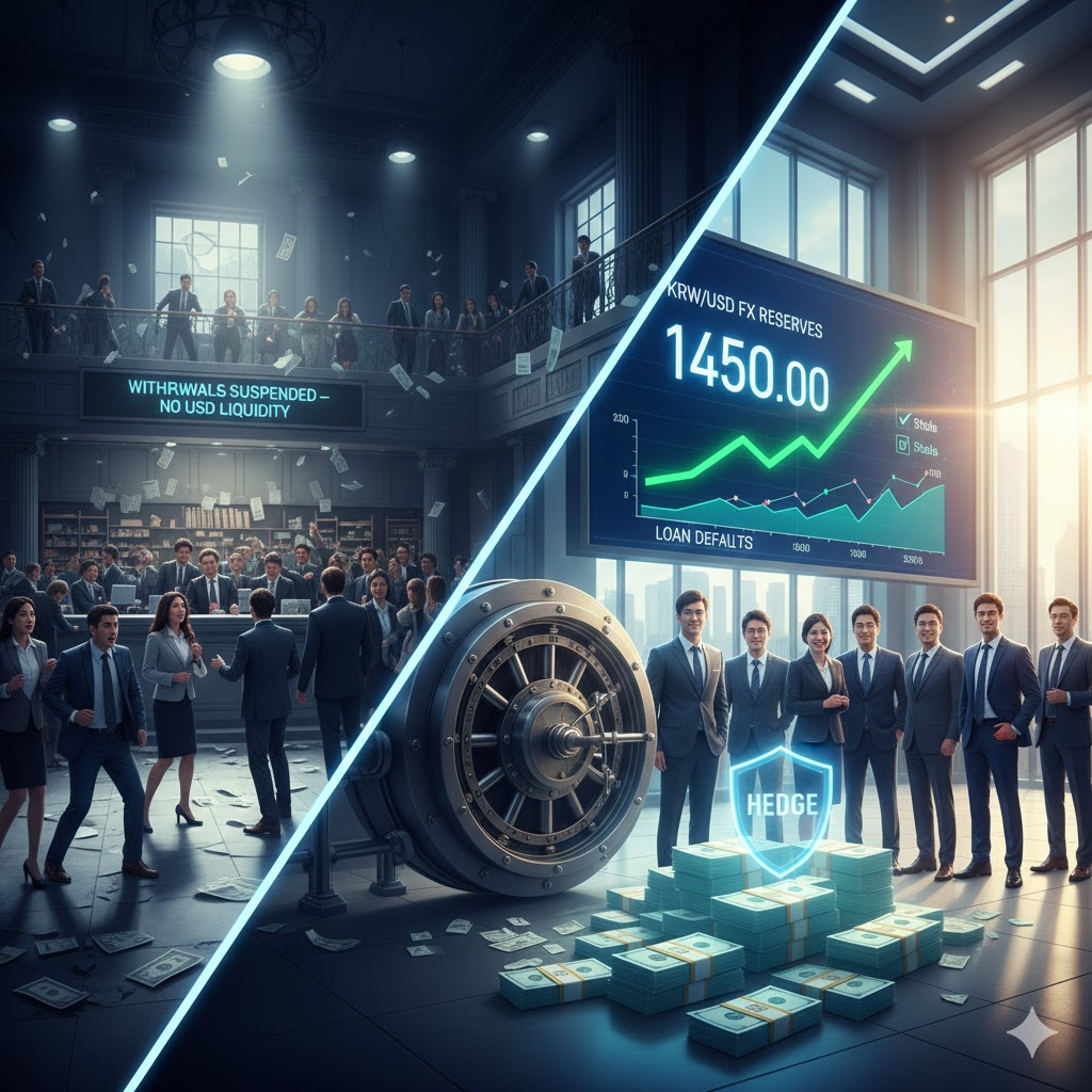 뱅크런과 환율 급락은 모두 **'신뢰의 붕괴'**에서 시작됩니다. 환율이 요동치는 지금, 우리에게 필요한 것은 차가운 이성과 데이터 중심의 사고입니다. 정부의 대응과 글로벌 경제 지표를 면밀히 살피며, 여러분의 소중한 자산을 안전하게 지켜내시길 바랍니다.