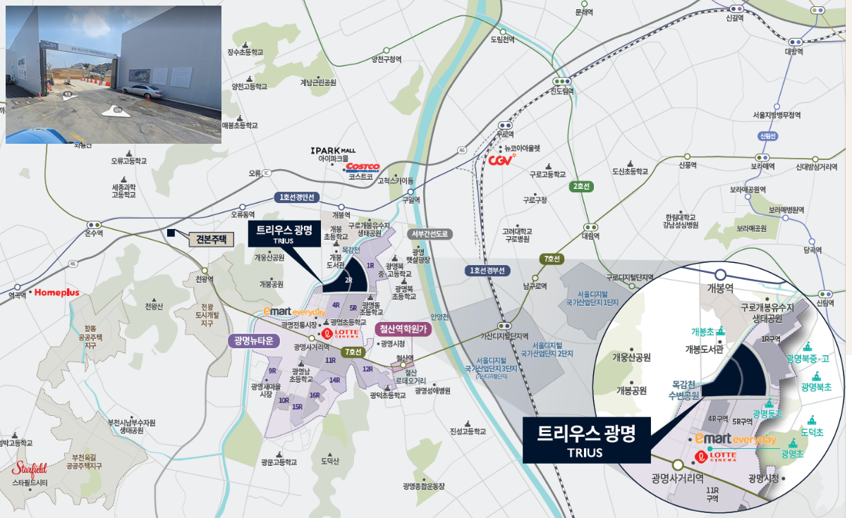 트리우스 광명은 재개발 사업지로 총 26개동 지하 3층, 지상 35층 규모로 세대수 3344가구로 지어지게 됩니다. 전체 가구 중 730세대가 일반분양으로 나오게 됩니다. 전매제한이 1년, 거주의무기간 없으며, 계약금 10% + 중도금 60% + 잔금 30%, 2024년 12월 입주예정일이며, 중도금 이자 후불제가 적용됩니다. 7호선 광명사거리역이 도보 10~15분 소요, 1호선 개롱역 약15분 소요 이런 곳을 더블 역세권이라고 표현하는 분들이 있지만 둘다 그리 가깝지 않은 위치이지만 도보로 이용은 할 수 있는 다소 어중간한(?) 위치에 1호선과 7호선이 있기 때문에 역세권으로서의 아파트로 보기에는 어렵습니다. 광명 뉴타운 4구역 트리우스 아파트를 비롯한 앞으로 분양하게 될 5구역 9구역 11구역이 있다는 것을 생각해보면 지금의 분양가도 입주를 하게되는 시점에는 "쌌었네", "분양 받길 잘했네" 라는 생각을 하게 되실겁니다. 광명은 살기좋은 도시로도 잘 알려져 있는 지역 인지도가 높다보니 향후에도 큰 관심 받는 지역이 될 것은 분명합니다. "분양"을 받는 다는 것은 분양가의 10% 만으로 3년 후 미래 아파트의 가치 투자를 할 수 있다는 엄청난 매력이라고 볼 수 있습니다. 아파트 분석을 잘하는 모 유튜버에 따르면 미래에 기대를 할만한 교통호재를 고려해보면 봤을 때 광명 시흥 신도시 철도계획 향후 경전철이 광명사거리역을 지나 개롱역을 지나게 되는데 그때까지 무엇인가 생기게 된다면 큰 호재가 될 수 있을 것이라는 말도 듣고 보니 저도 새삼 새롭게 느끼게 되었습니다.