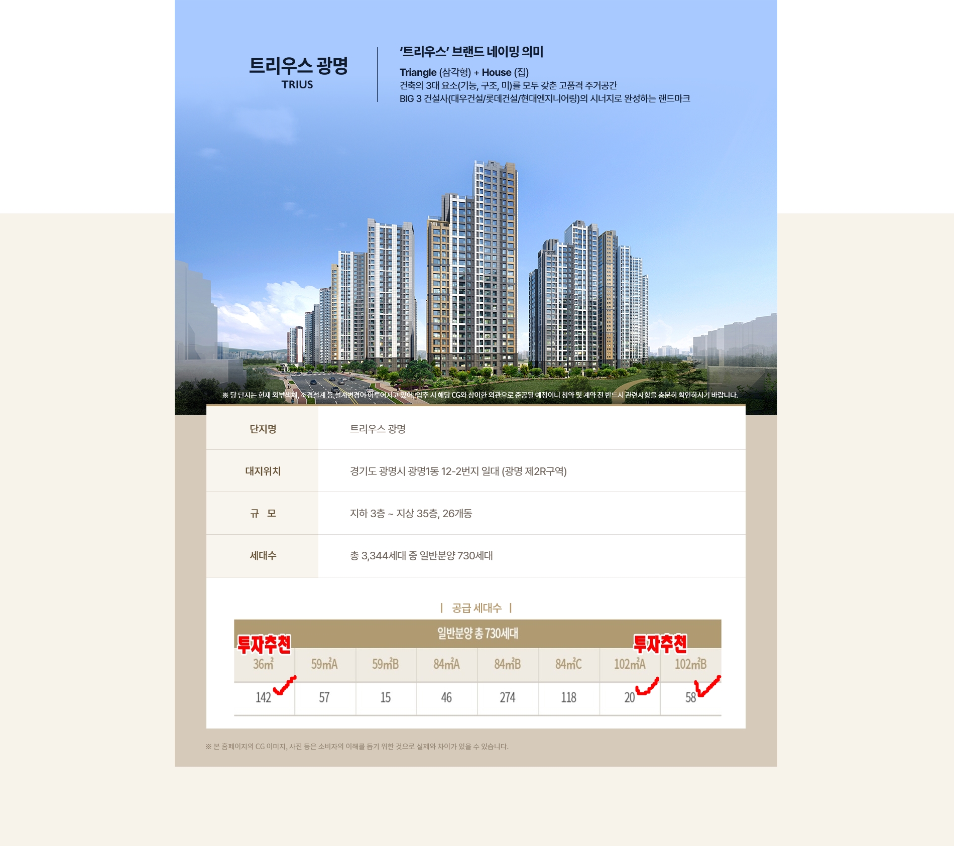 베르몬트로 광명이라고 불리우던 트리우스 광명이 입주자모집공고(10.6)를 발표했습니다. 역세권이라고 하기에는 다소 무리가 있는 것은 사실입니다. 기본적인 사업개요를 비롯한 분양가, 평면도, 단지배치도, 분석 등을 자세히 소개해 드리겠습니다. 실입주 및 투자를 하시기에 앞서 좋은 참고글이 되었으면 하는 바램입니다. 글 중간 중간 저의 의견이 포함되어 있으니 끝까지 잘 읽어주세요.