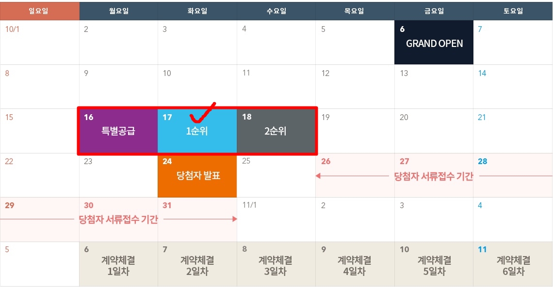 특별공급 10.16(월), 1순위 : 10월 17일(화), 당첨자 발표 : 10월 24일(화)