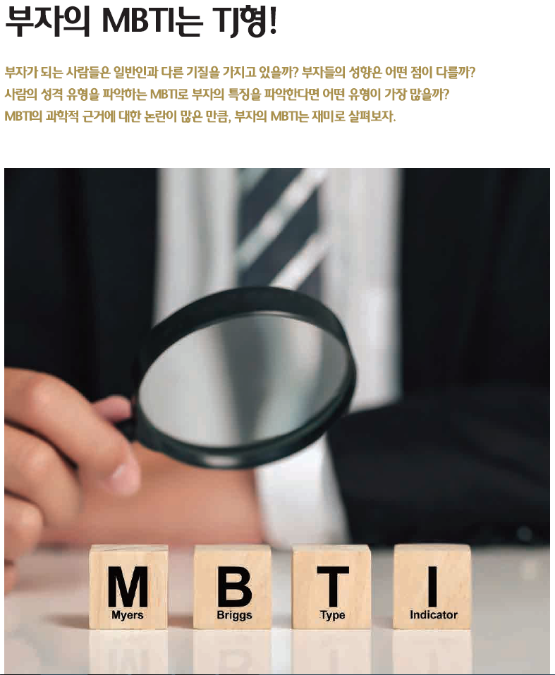 품격을 보여주는 부자의 나눔, 부자의 MBTI는 TJ형으로 나타났습니다. 최근 MZ세대 사이에서 인기있는 MBTI를 부자 보고서에 이렇게 나온것을 보니 어느정도 일리가 있는 것으로 보여지기도 하네요. 금융 자산 규모가 클수록 "이성적임을 표현하는 T", "계획적임을 나타내는 J"의 비율이 월등히 높았습니다. 현실주의자로 묘사가 되는 성격유형이군요. 전통과 성실을 가치 있게 여기는 특징을 보이기도 한다고 합니다.