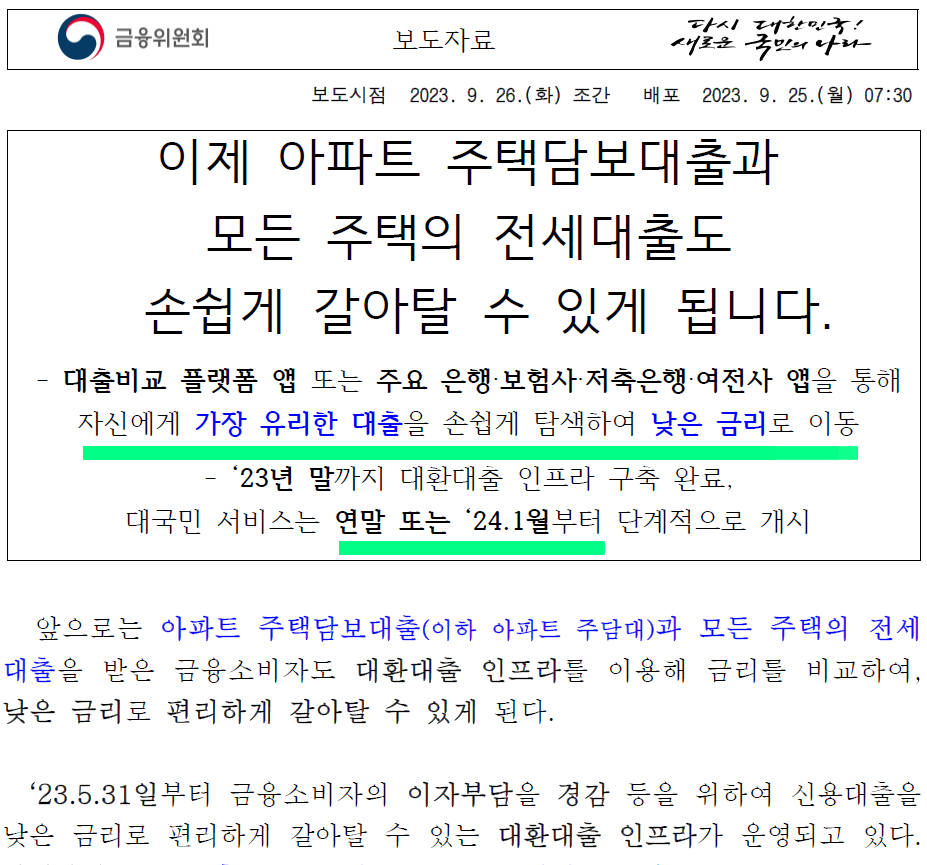 최근 2년간 미국의 가파른 금리 인상 등으로 우리나라에까지 영향을 미치고 있는데 주택담보대출 혹은 전세보증금 대출 등으로 월 상환해야 하는 금액이 높은 것이 현 실정입니다. 금융기관에서 대출을 받은 뒤 이전의 대출금이나 연체금을 갚는 제도로 신용등급  등으로 이자가 높아 연체금이 발생하거나 생활의 안정을 찾을수 있도록 유리하게 변경하는 것을 의미합니다. 쉽게 말해 "기존 대출보다 더 유리한 조건으로 신규 대출을 받아 상환하는 것"을 말합니다.