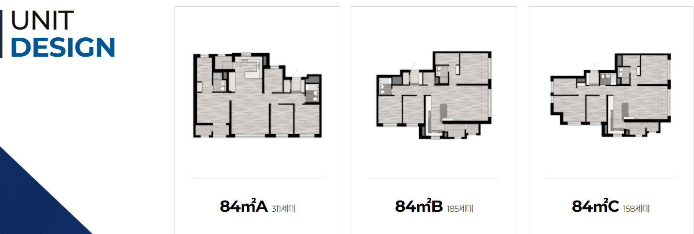 -> 2024년 3월입주 예정 / 316세대 총6개동 전세대 전용 84㎡ 34평형으로 전세대 배치되어있습니다.