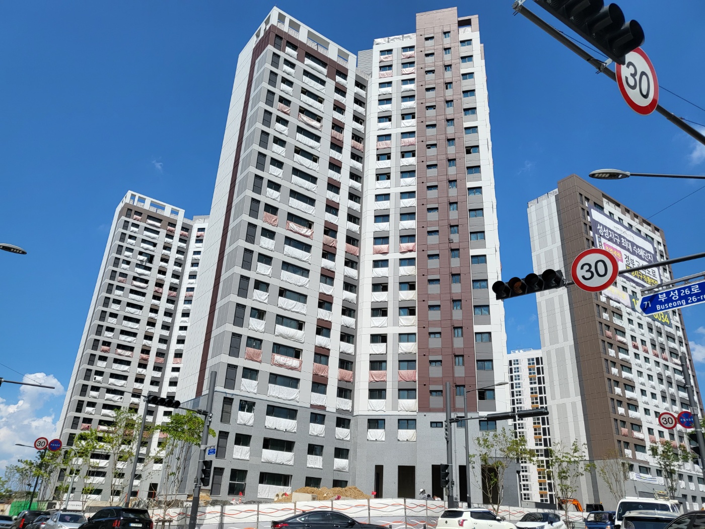 되고있는 모습이에요~시그니처 컬러답게 도색이 차분하고 고급스러운 컬러감입니다. 부성지구 첫마을로 입주를