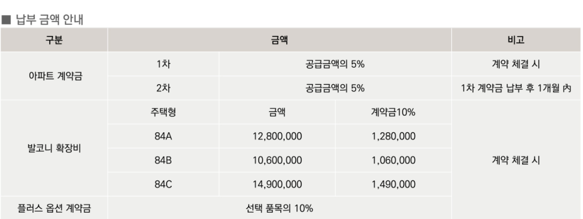 분양가격과 발코니확장가격 위 분양가격표 참고하세요~!