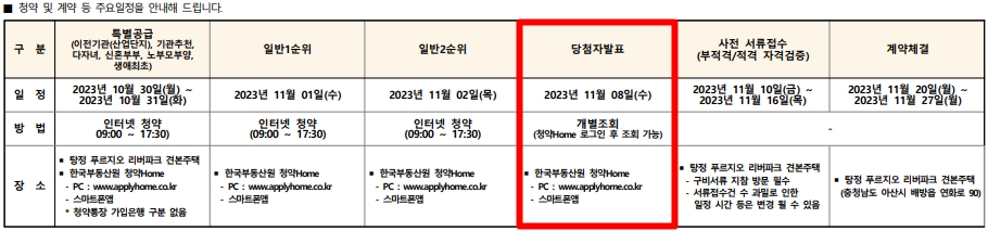 아산 탕정 푸르지오 리버파크 당첨자 발표일은 11월 8일(수)입니다. 11월 7일 23:59부터 심장이 쿵쾅쿵쾅 하시는 분들 많으셨죠~ 오랜만에 청약에 대한 기대를 해보시는 분들 많으시겠네요^^