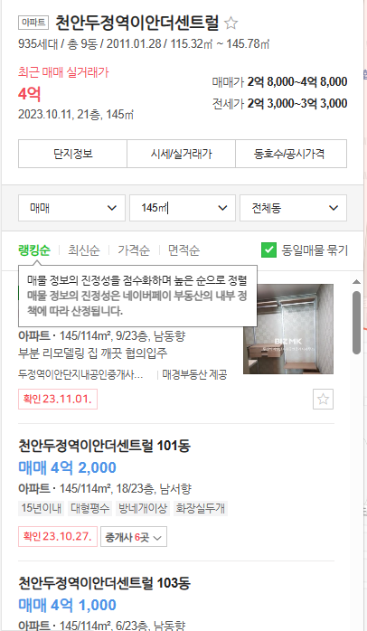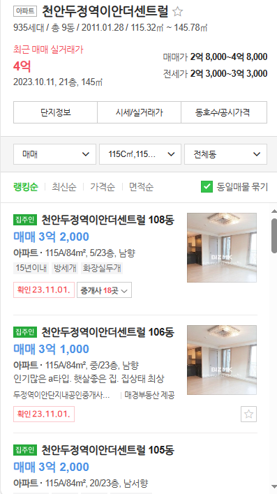 두정역 이안더센트럴 아파트의 시세와 간단한 설명드렸습니다. 두정동 이안아파트 매물접수