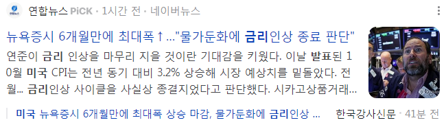 미국소비자물가지수(CPI) 둔화로 금리인상 종료