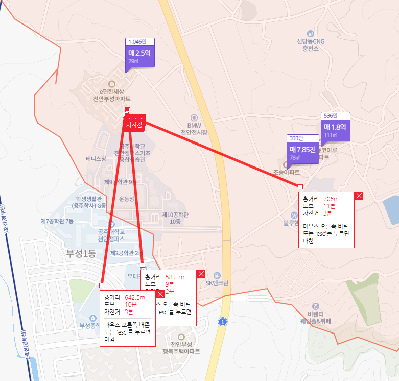 부성 이편한세상과 인접하고 있는 1번국도에 위치한 천안시 농수산물도매시장도 가깝게 이용할 수