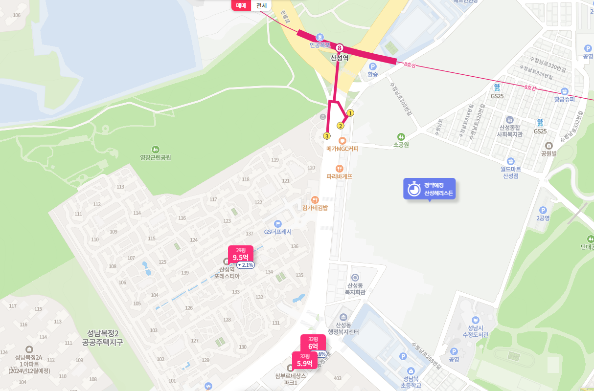 입지는 정말 대박 인 곳입니다. 8호선 산성역 초역세권에 해당하는 곳입니다. 보통 5분 거리 이내에 들어오면 역세권, 10분이내 준역세권이라고들 말합니다. 이정도면 몇분인가요? 몇 초인가요? 그만큼 엄청난 곳입니다. 또한 아파트의 동쪽으로는 아파트가 분양 예정입니다. 이 또한, 매매가격을 견인하는 역할을 할 것으로 보여집니다. 2층에 당첨되도 문제 없어보입니다. 워낙 가격이 받쳐주니까요
