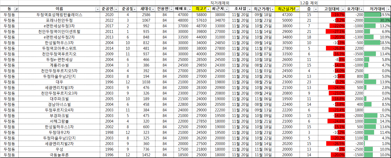 맞춰드리겠습니다. 더불어 두정동 아파트시세를 포함하여 고점대비 아파트 가격의 회복세는 어떠한지