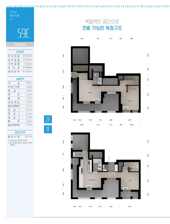 위 배치표를 보시면 파란색라인이 복층세대입니다. 한번쯤 거주해보고 싶은타입이죠^^