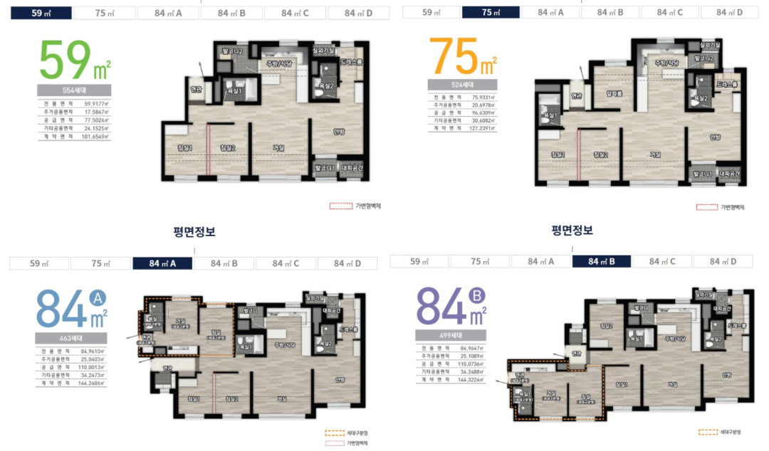 84A타입과 84B타입의