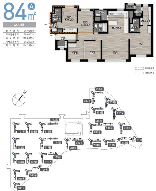 천안 한양수자인 에코시티 전용 59㎡ / 75㎡ / 84㎡ 각25평형 30평형 34평형과 34평형중 분리세대형