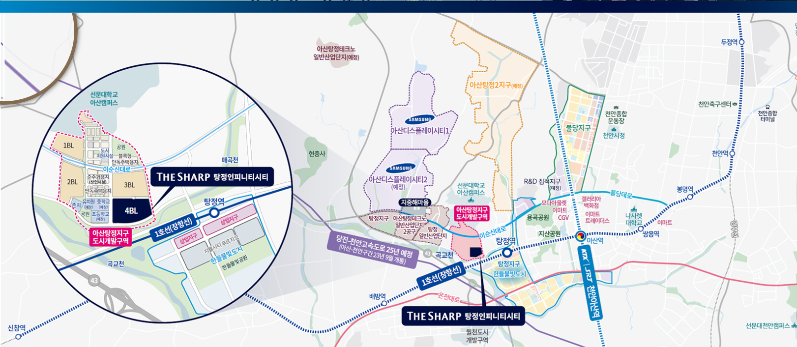 아산 탕정 삼성디스플레이시티와 아산 1,2 일반산업단지 그리고 아산 스마트밸리 천안 삼성디스플레이등